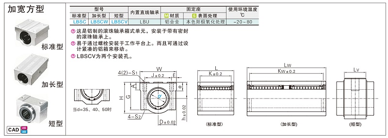 直线轴承固定座组件 加宽方型·标准型/加长型/短型